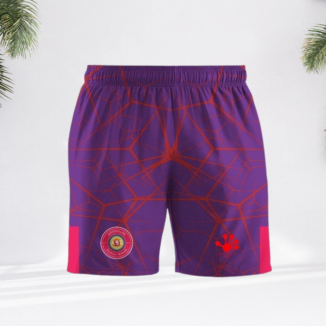 Featuring a bold geometric pattern with the Adrenaline Beach Tennis Club logo proudly displayed, this is more than just a pair of shorts – they’re a statement of energy, passion, and pride.
